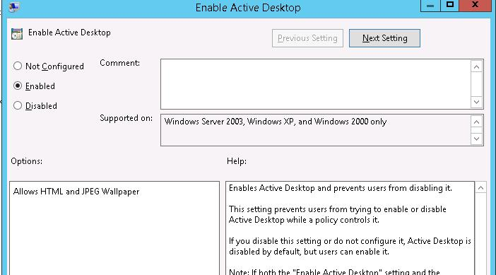 Нам нужно включить политику Enable Active Desktop (Включить Active Desktop).