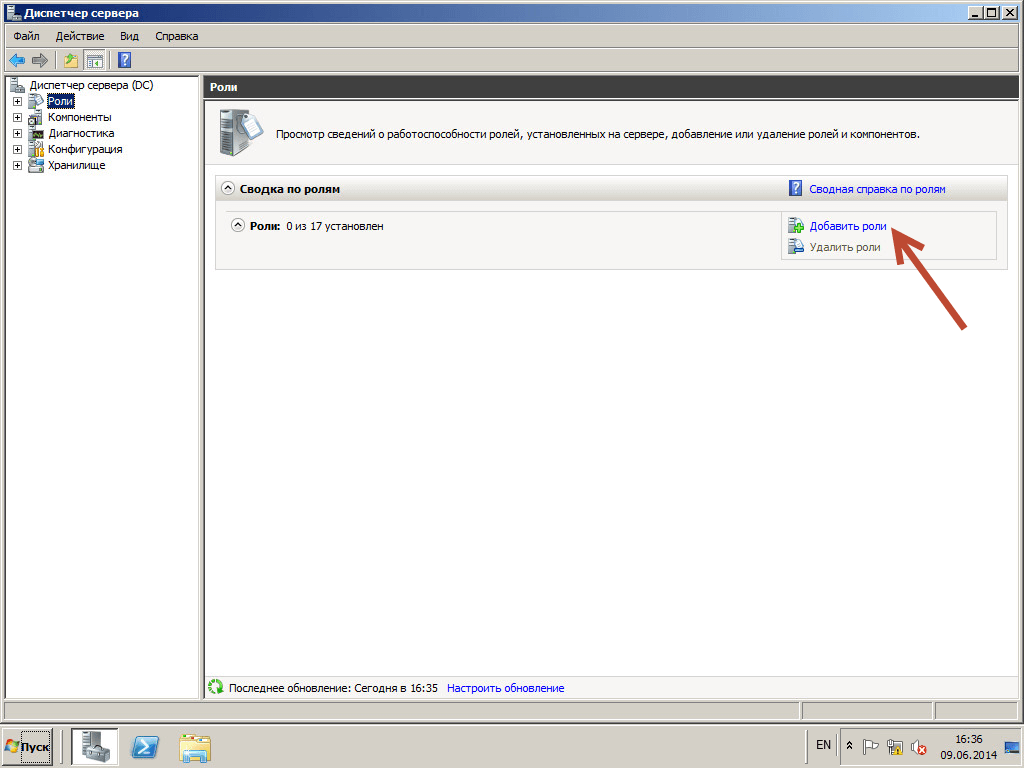 Когда вы уже поставили windows server 2008R2 все обновили настроили статику назвали свой компьютер как нужно, у меня это будет для примера DC, то можно приступать.