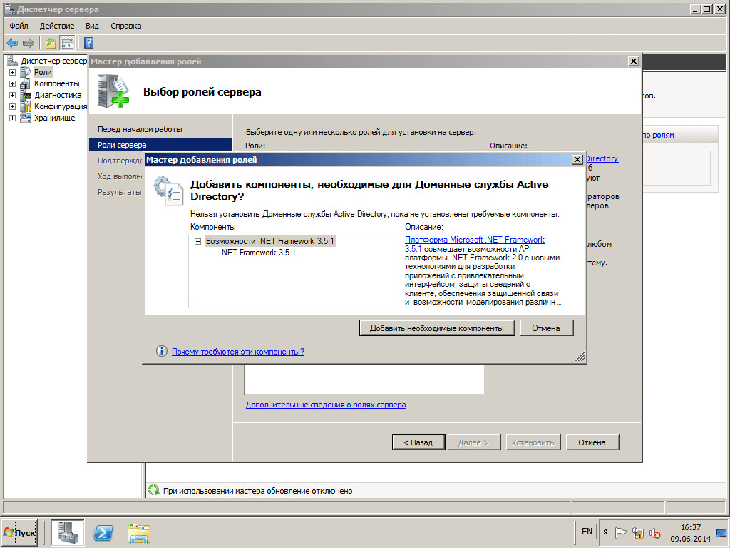 Дальше мастер скажет, что нужно поставить компоненты NET.Framework 3.5.1, жмем добавить