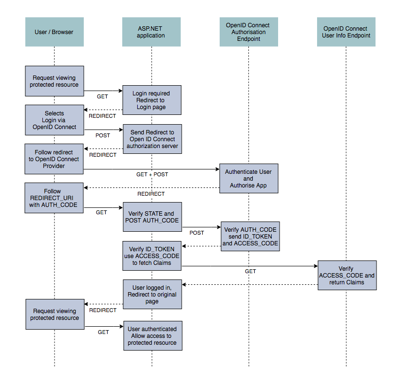 С точки зрения потока протокола между пользователем, вашим приложением ASP.NET и поставщиком удостоверений при использовании OpenID Connect, он по сути такой же, как поток OAuth 2.0, который я описал в предыдущей статье об OAuth 2.0 . Как упоминалось ранее, OpenID Connect построен на основе OAuth 2.0, так что, вероятно, это не должно удивлять!