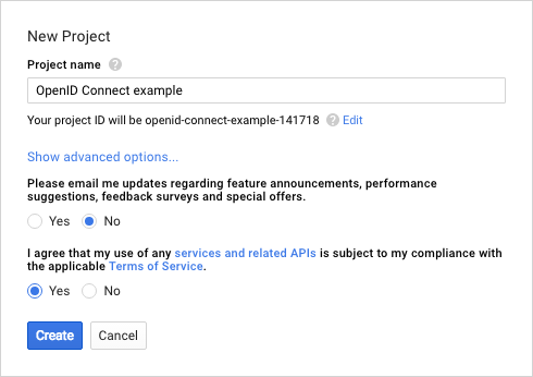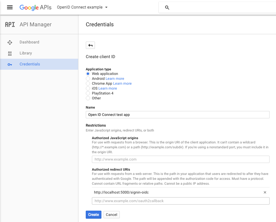 Как и при настройке Facebook в качестве поставщика OAuth 2.0 для нашего приложения, нам необходимо зарегистрировать наше приложение в Google, прежде чем мы сможем использовать OpenID Connect.