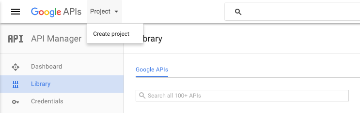 Первый шаг — посетить http://console.developers.google.com и зарегистрироваться в качестве разработчика. После входа в систему и настройки вы можете зарегистрировать свое приложение. Нажмите «Проект» и «Создать проект» в верхнем меню.