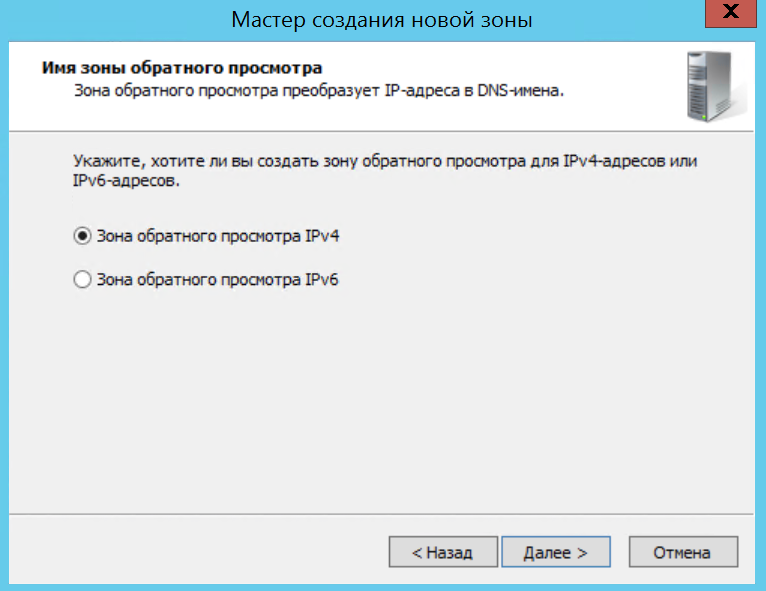 Выбираем протокол заданный по умолчанию IPv4 Reverse Lookup Zone. Нажимаем Next.
