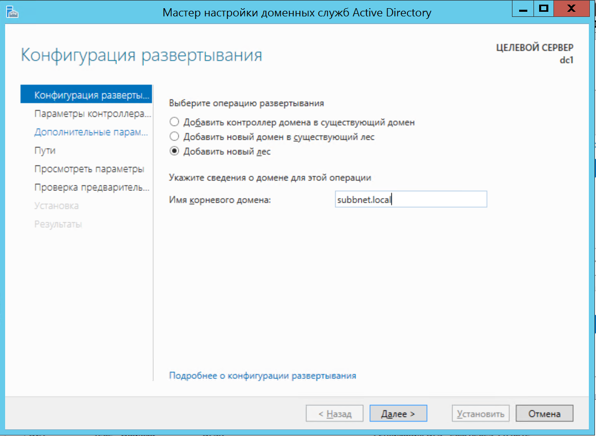 - Add a new domain to an existing forest — добавить новый домен в существующем лесу: