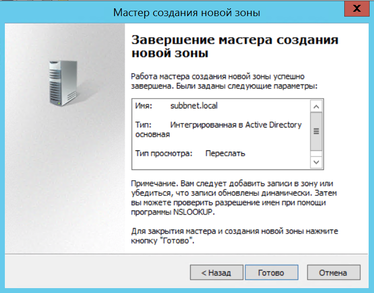 - Secondary zone — Дополнительная зона. DNS-сервер становится дополнительным источником сведений о зоне. Зона на этом сервере должна быть получена от другого удаленного компьютера DNS-сервера, который также хранит зону.