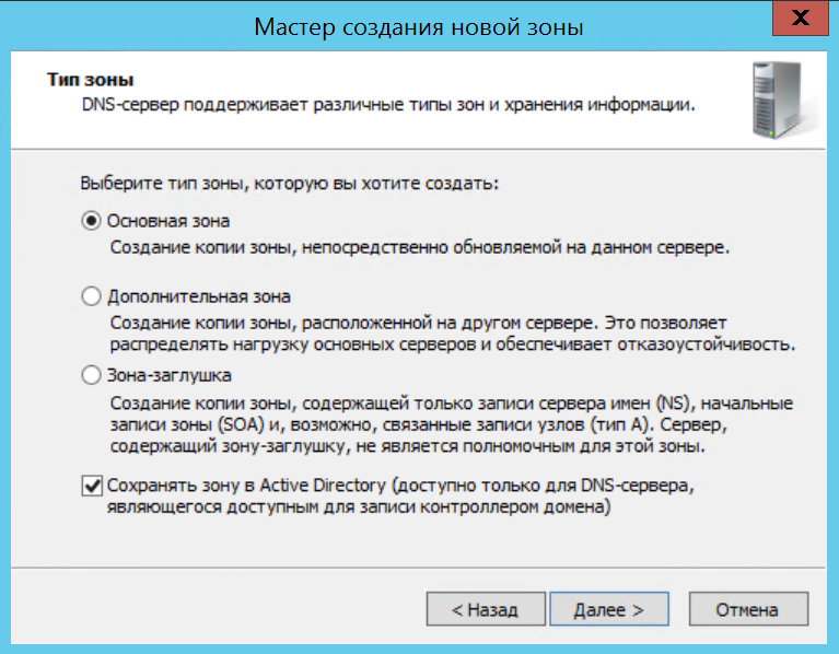- Primary zone — Основная зона. Зона хранится на DNS-сервере, является основной. DNS-сервер становится основным источником сведений об этой зоне.