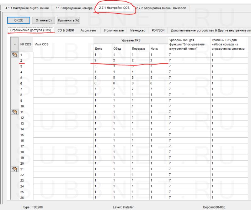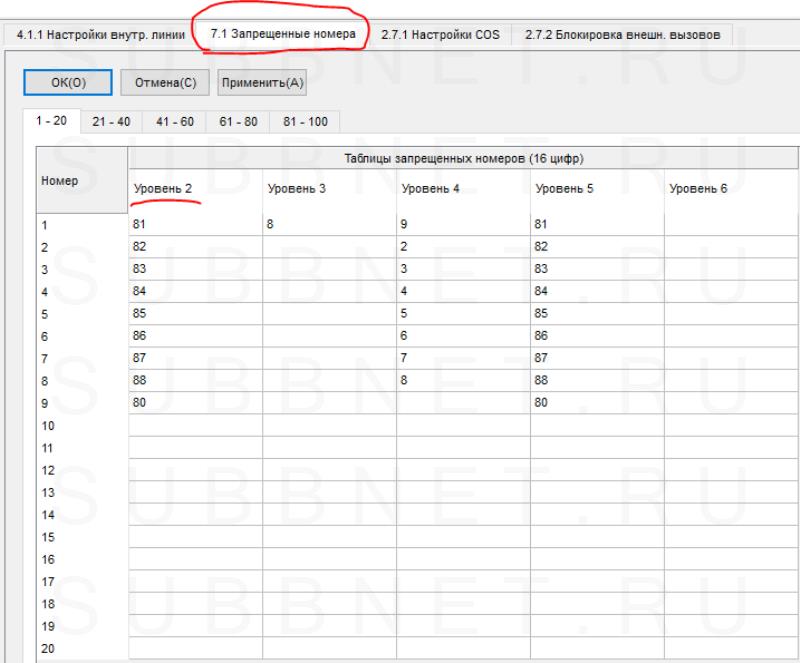 Т.е. для COS2 запрещены наборы на межгород, но разрешены наборы на сотовые телефоны 8(9хх) ххх-хх-хх.