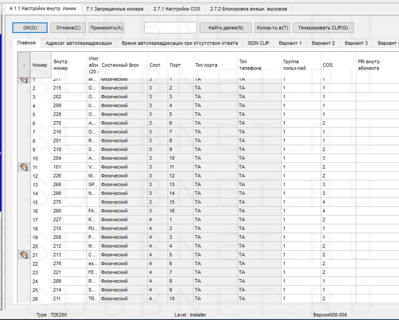 Здесь мы описываем основные свойства разных классов обслуживания. В колонках TRS LEVEL прописываем каждому классу уровень ограничения (свойства самого уровня пропишем позже). Здесь же мы можем разрешить некоторым классам переводить звонки с одной городской линии на другую (например сотрудник уходя домой может перевести все звонки на свой мобильный телефон).