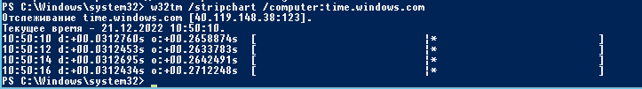 Затем проверьте, что сервер времени Microsoft доступен по порту NTP (UDP 123). Для проверки доступности UDP порта можно использовать утилиту portquery или можно напрямую обратиться к серверу и запросить у него текущее время: