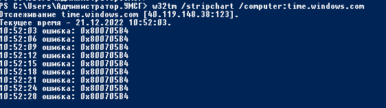 Если команда вернет ошибку error: 0x800705B4, значить указанный NTP сервер не доступен.