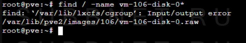 find / -name vm-106-disk-0** в нашем примере мы ищем vm-106-disk-0.