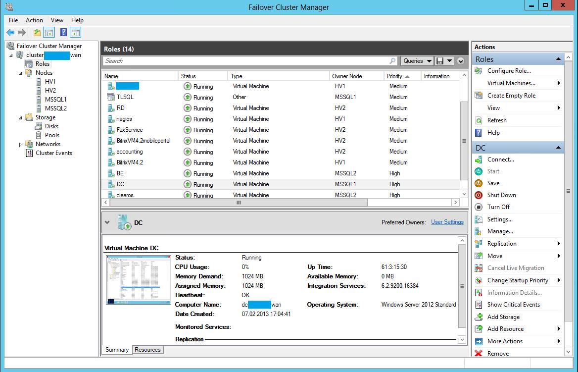 Отказоустойчивость для Hyper-V VM и MSSQL