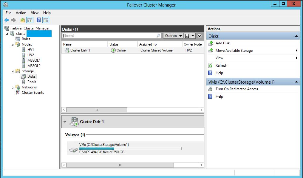 Что бы кластеризовать виртуальные машины, нам понадобится Cluster Shared Volume (CSV).