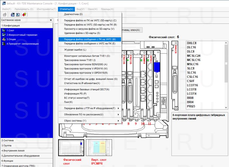 Подготавливаем все файлы, и заходим в меню Утилиты > Передать файлы сообщения с ПК на УАТС.