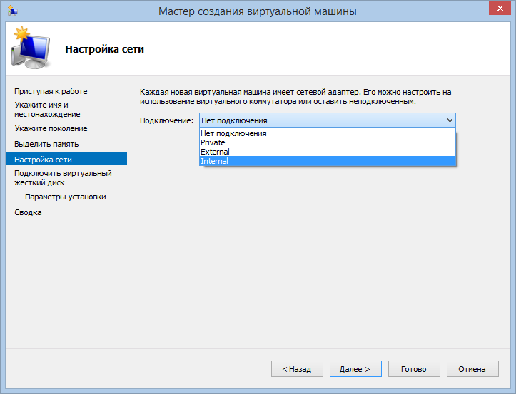 Указываем виртуальный коммутатор, к которому будет подключена ВМ.