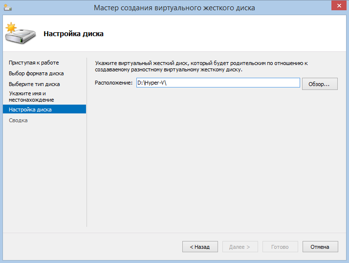 • Разностный — этот тип диска не содержит полную копию данных, в нем хранятся только изменения по сравнению с основным диском. Разностный диск не является самостоятельным и полностью зависит от основного, или родительского диска. При этом основной диск всегда остается неизменным, а все изменения пишутся на разностный диск. Обратите внимание, что у основного и разностного дисков обязательно должен быть одинаковый формат файла. Более подробно о разностных дисках можно узнать из статьи Разностные виртуальные диски в Hyper-V.