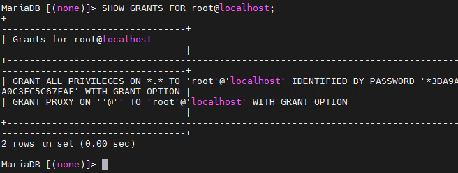 SHOW GRANTS FOR username@localhost;