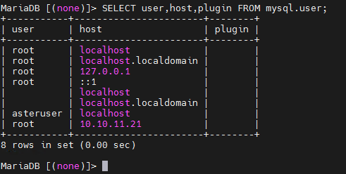 SELECT user,host,plugin FROM mysql.user;