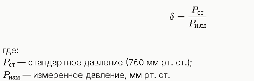 Учитывает отклонение давления газов от стандартного (обычно 760 мм рт. ст.). Формула: