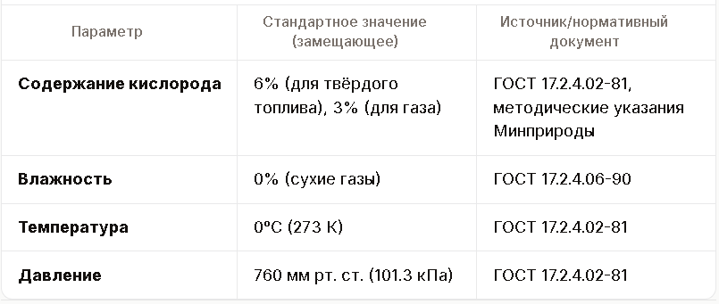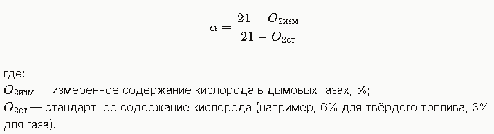 Используется для пересчёта концентраций загрязняющих веществ к стандартному содержанию кислорода (обычно 6% или 11% O₂, в зависимости от нормативов). Формула: