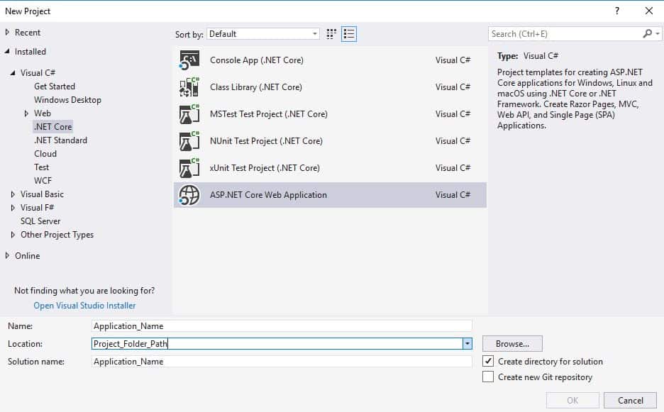 В Visual Studio выберите «Файл» > «Создать» > «Проект» (Ctrl + Shift + N). Затем выберите веб-приложение ASP.NET Core.