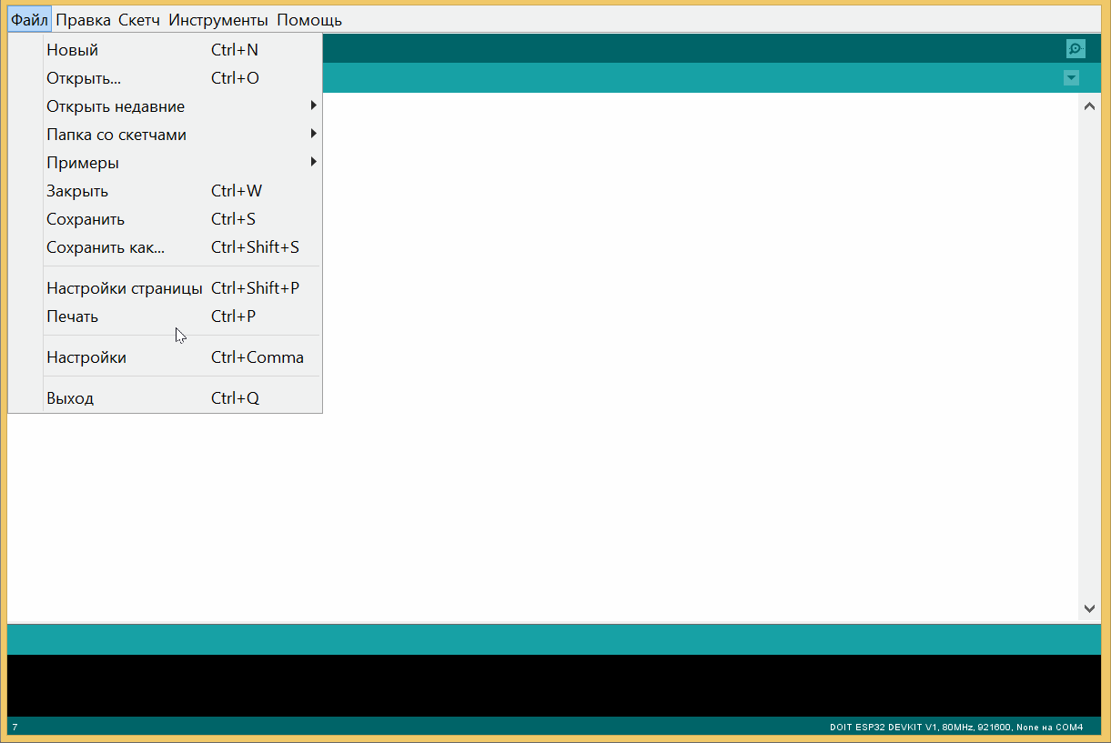 Чтобы найти папку «espressif» и папку, где установлена Arduino IDE (путь установки), запустите среду разработки и выберите пункт меню «Файл > Настройки» («File > Preferences»).