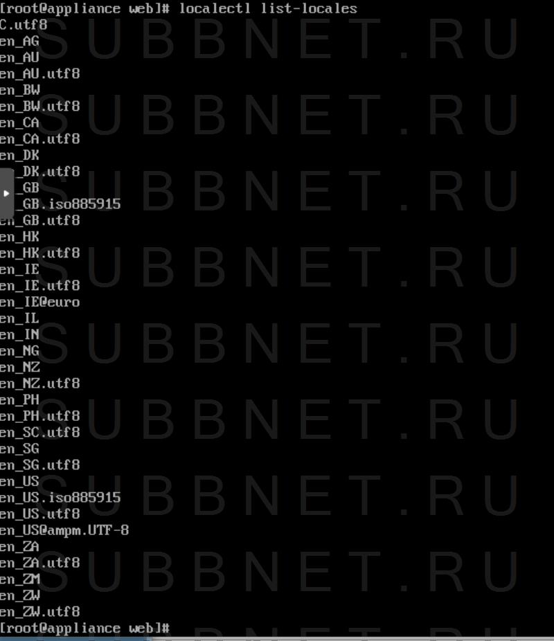Смотрим список доступных локалей в системе CENTOS 8.