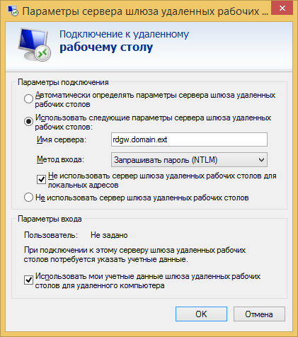 Рис.14 — Параметры подключения к шлюзу удалённых рабочих столов
