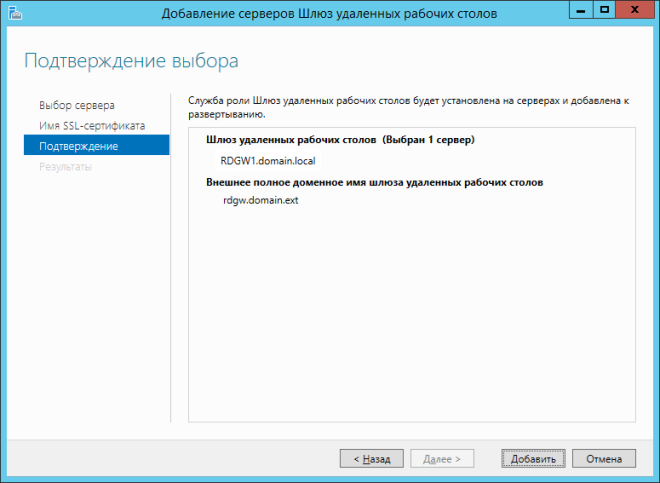 Рис.3 — Добавление шлюза удалённых рабочих столов к развёртыванию