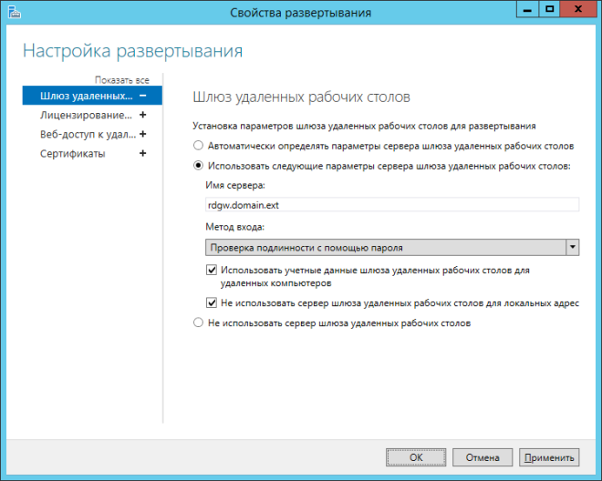Рис.11 — Базовые параметры шлюза удалённых рабочих столов