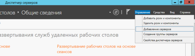 В рассматриваемом случае, роль службы шлюза удалённых рабочих столов будет устанавливаться на сервер ещё не участвовавший в развёртывании. Поэтому, сначала его необходимо добавить в Диспетчер серверов.
