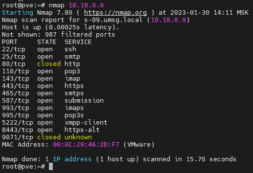 Можем сканировать порты nmap для нужного узла запустив утилиту без опций: