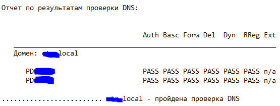 notepad dcdiagdns.txtЕсли всё хорошо то увидим везде слово PASS: