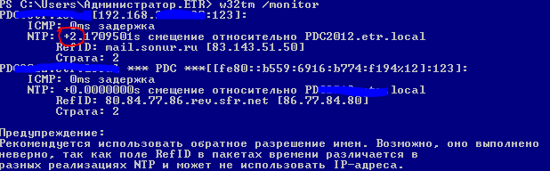 w32tm /monitorПолучим: