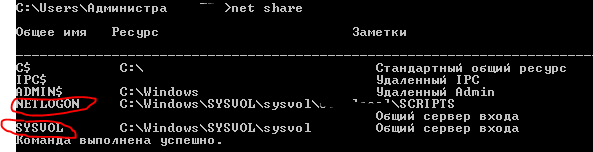 Проверим расшарены ли эти папки. На каждом контроллере домена: