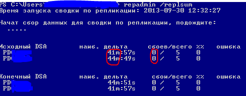 repadmin /replsumПолучаем: