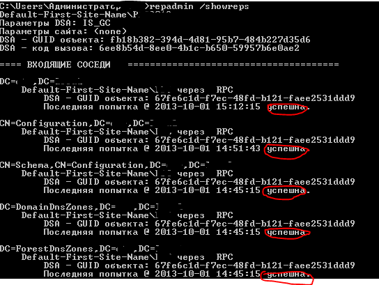 repadmin /showrepsПолучим такой вывод: