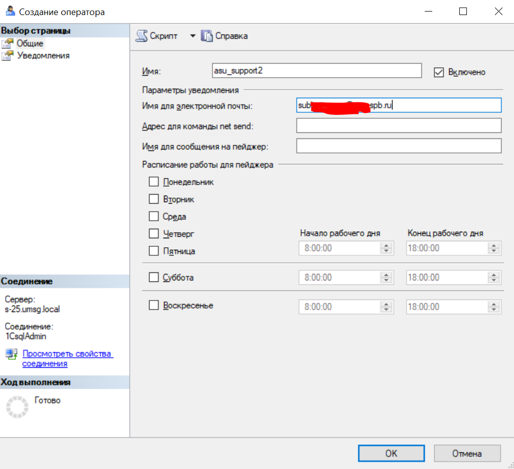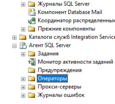 - Создание оператора оповещений и настройка почты агента SQL Server
