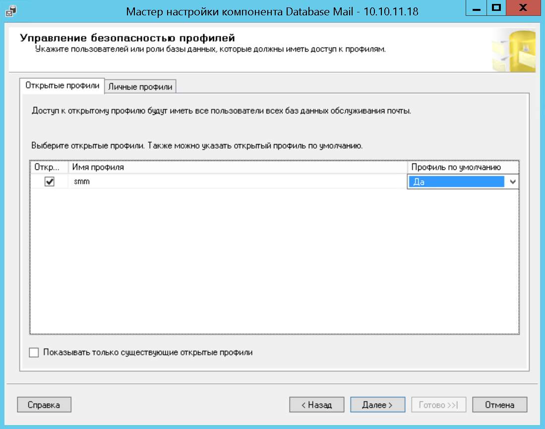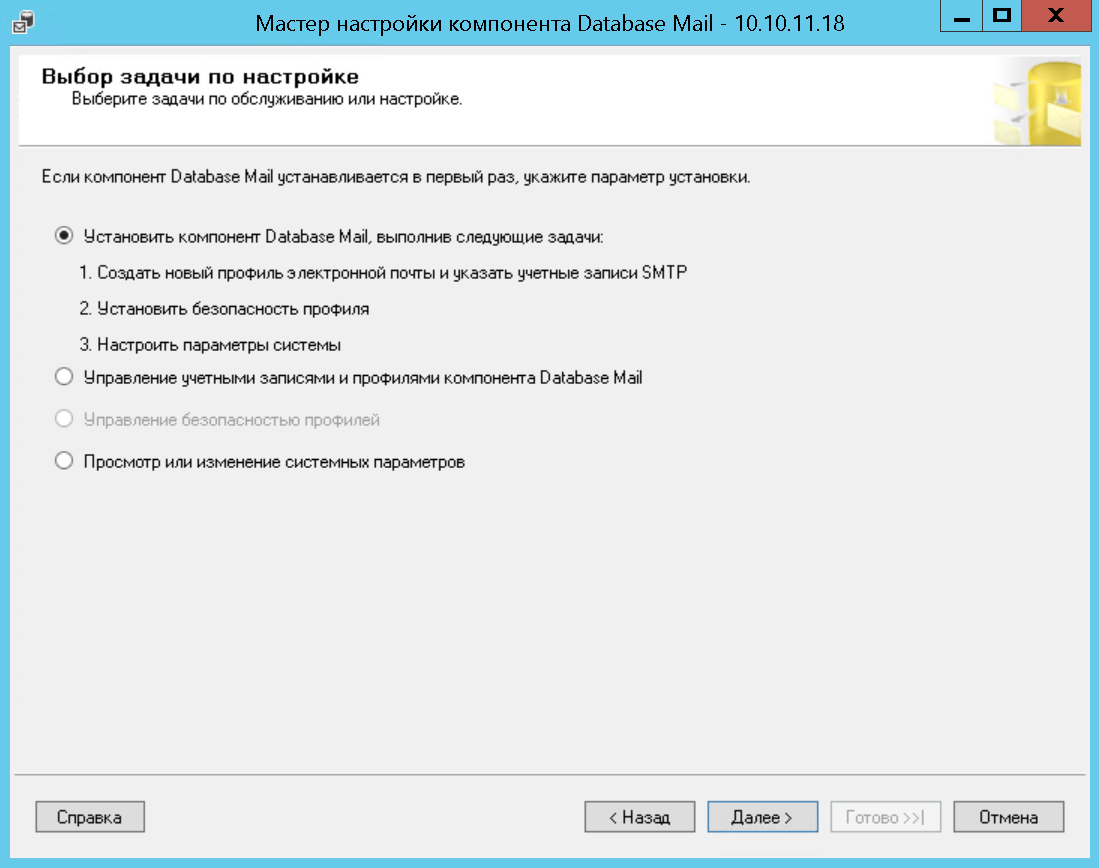 - Включение и настройка профиля компонента Database Mail