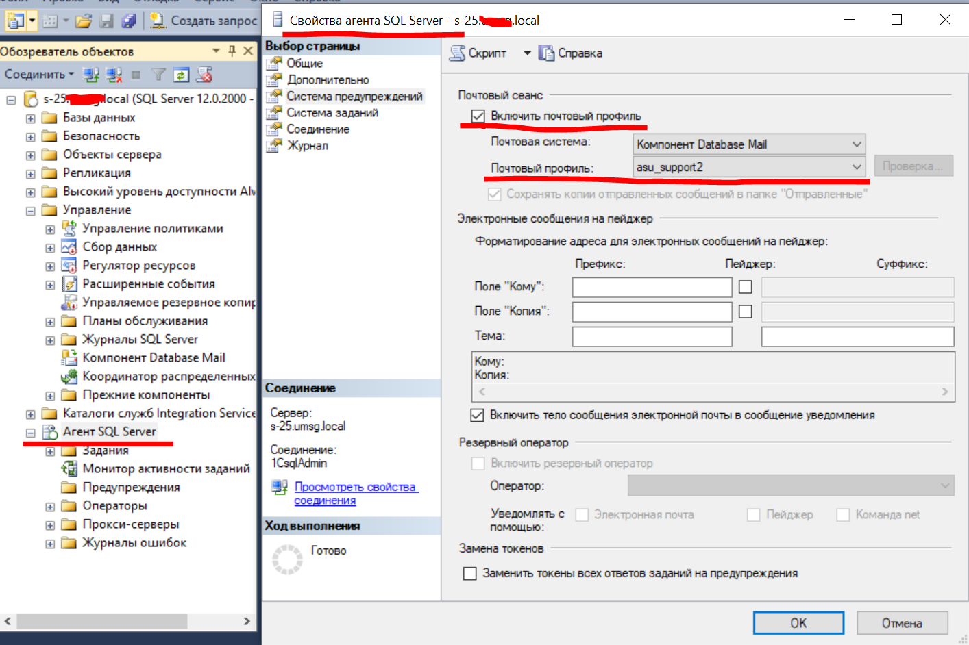 НАСТРОЙКА ПОЧТЫ АГЕНТА SQL SERVER