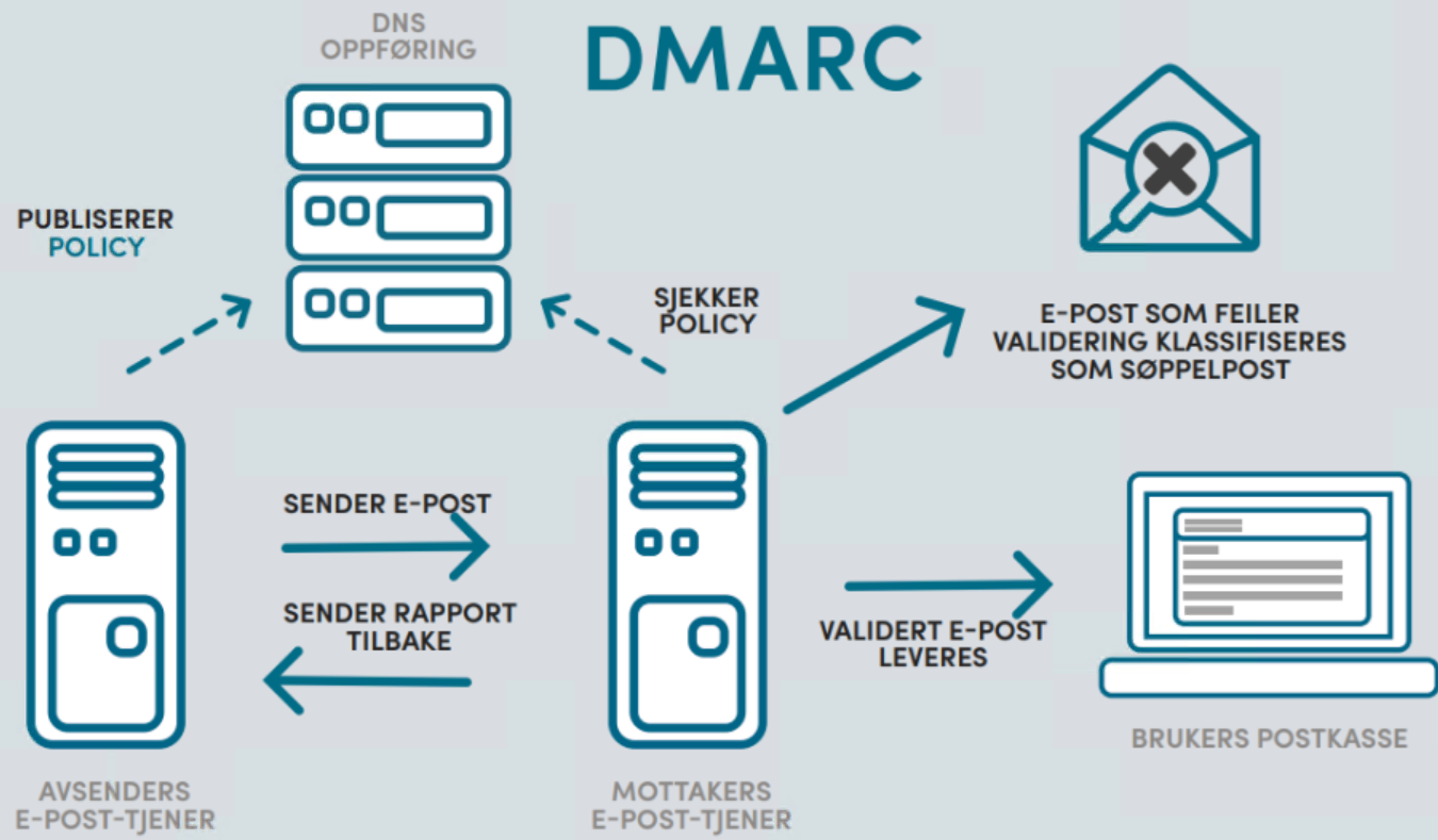 Domain-based Message Authentication, Reporting and Conformance (идентификация сообщений, создание отчётов и определение соответствия по доменному имени) или DMARC — это техническая спецификация, созданная группой организаций для борьбы со спамерами, подделывающими адреса отправителей. Она основана на идентификации почтовых доменов отправителя на основании правил и признаков, заданных на почтовом сервере получателя. Перед настройкой dmarc необходимо настроить spf и dkim записи, это связано с тем, что технология DMARC использует данные средства. Если отправленное сообщение не прошло проверку DKIM и SPF, то оно не пройдет и DMARC. Если же сообщение успешно прошло хотя бы одну проверку (DKIM или SPF), то и проверку DMARC сообщение пройдет успешно.