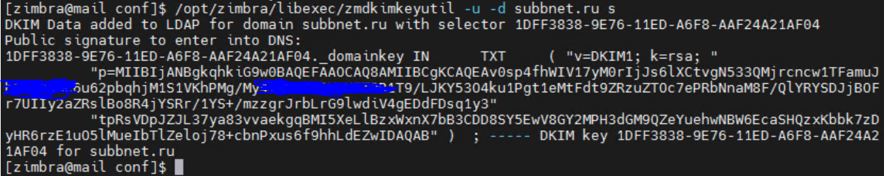 /opt/zimbra/libexec/zmdkimkeyutil -r -d subbnet.ru