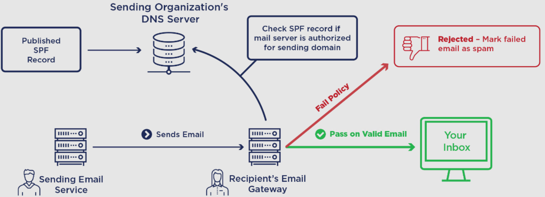 С помощью spf-записи владелец домена может указать список серверов, имеющих право отправлять email-сообщения для домена. В общем случае порядок следующий: