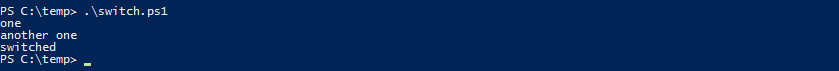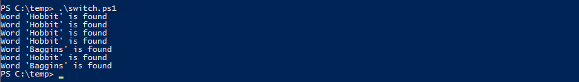 Write-Host ″switched″Ключевое слово Continue указывает, что обработка текущего условия завершена и не будет продолжаться, после чего начнется поиск следующего условия. Т.е. в отличие от Break, Continue не завершает работу Switch, а переходит к следующему условию: