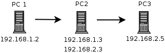 Перенаправление порта (port forwarding, port mapping) может понадобиться, когда у машины PC1 есть доступ в сеть 1 и сеть 2, а у машины PC1 - только в сеть 1, а ей нужно подключиться к какому-то сервису на машине PC3 в сети 2. В таком случае схема будет примерно такая: