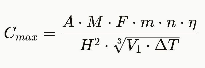 Формула расчёта максимальной приземной концентрации (ОНД-86)