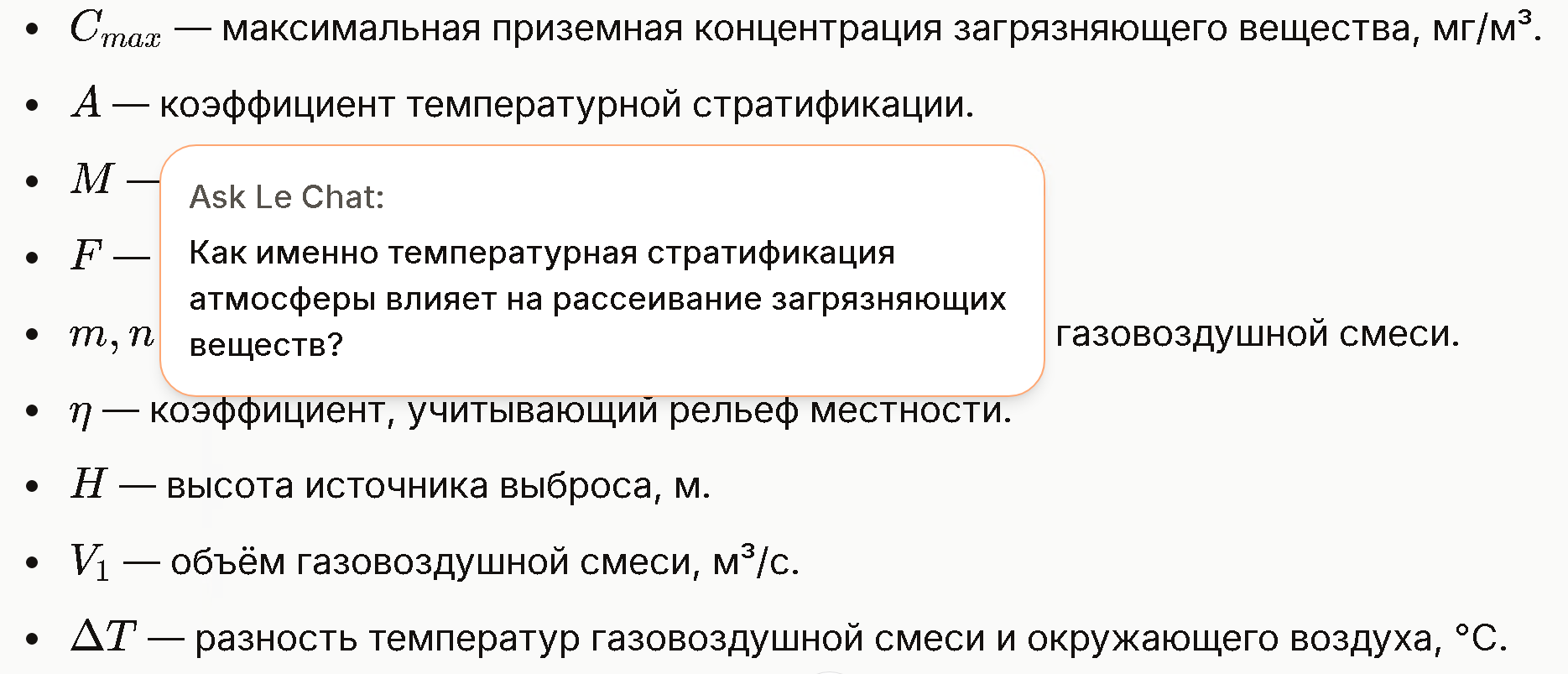 | Температура | Влияет на вертикальное перемешивание воздуха. Низкая температура может приводить к инверсии, что ухудшает рассеивание. |