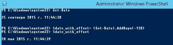 С помощью Get-Date получим в переменной значение текущей даты и уменьшим ее на 120 дней: