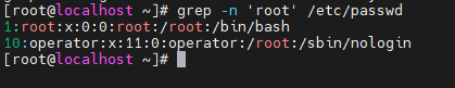 grep -n 'root' /etc/passwdПолучим: