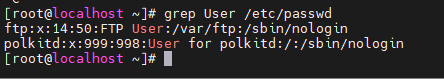 grep User /etc/passwdВ результате вы получите что-то вроде этого, если, конечно, существует такой пользователь: